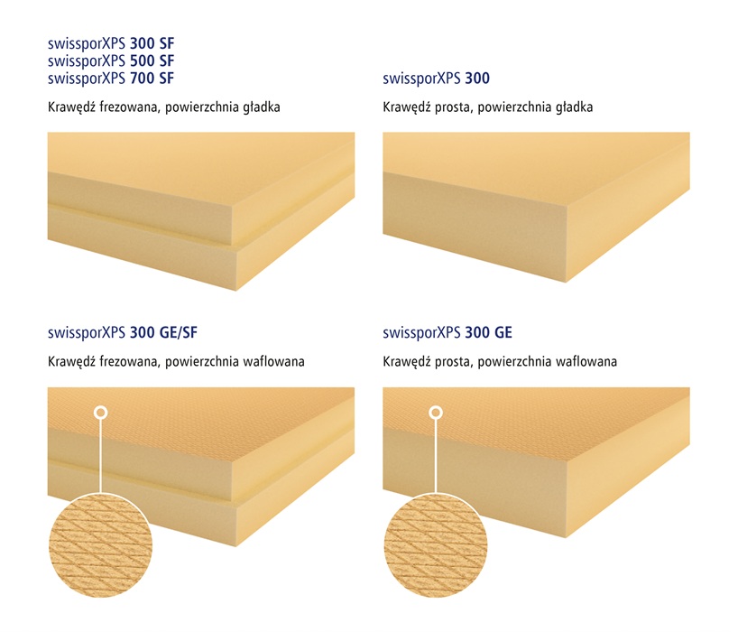 Materiał izolujący XPS (Extruded Polystyrene), czyli polistyren ekstrudowany, znany też jako styrodur, uzyskuje się ze spienionego polistyrenu metodą ciągłej ekstruzji płyt. Ma zwartą, jednolitą i zamkniętokomórkową strukturę. Cechuje się wyższą gęstością, odpornością na wilgoć, ściskanie oraz uszkodzenia mechaniczne niż EPS. Do termoizolacji fundamentów nadają się np. płyty swissporXPS, dostępne w różnych wersjach.