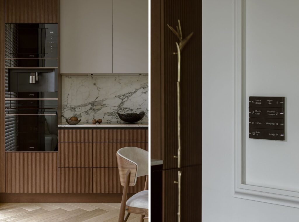 System inteligentnego sterowania pozwala właścicielce przełączać mieszkanie w tryb poranny lub wieczorny – zależnie od pory dnia, pracy czy nastroju. „To trochę jak oddech – przestrzeń dostosowuje się do rytmu życia, a nie odwrotnie.”