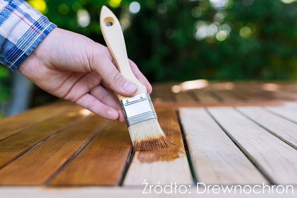 Sposobem na ochronę dużych poziomych powierzchni z drewna jest ich regularne olejowanie, najlepiej raz w roku. Konserwacja za pomocą oleju wykonana po lecie ochroni taras, podesty czy schody przed wilgocią, śniegiem i niskimi temperaturami. Tego typu preparat można także zastosować do zabezpieczenia mebli ogrodowych. Warto przy tym postawić na jakościowy olej, który odnowi kolor i wzmocni strukturę drewna. Olej Drewnochron, produkowany na bazie wysokiej jakości olejów roślinnych, w tym oleju tungowego, głęboko wnika w drewno, chroniąc je przed wilgocią i promieniowaniem UV.